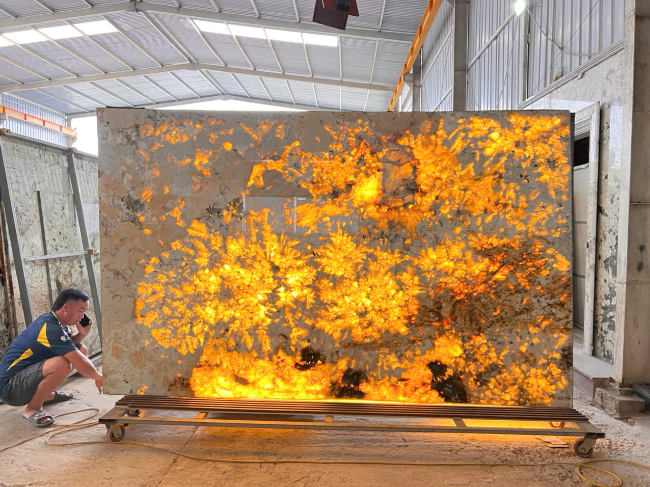 - Đội ngũ thi công tay nghề cao. Nhiều năm kinh nghiệm trong lắp đặt tranh đá xuyên sáng, quầy bar, vách tường, sảnh lớn.
