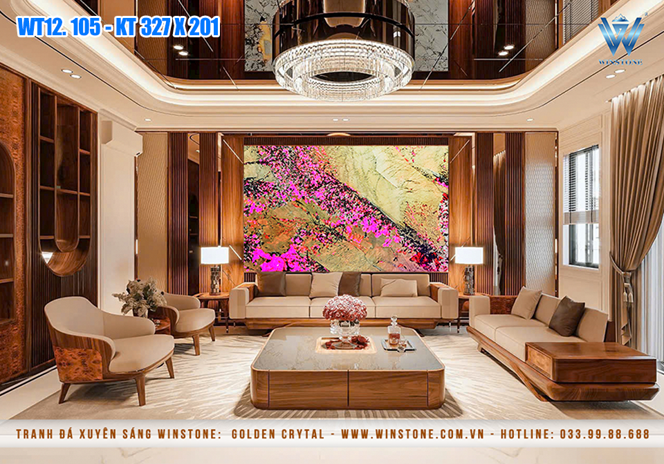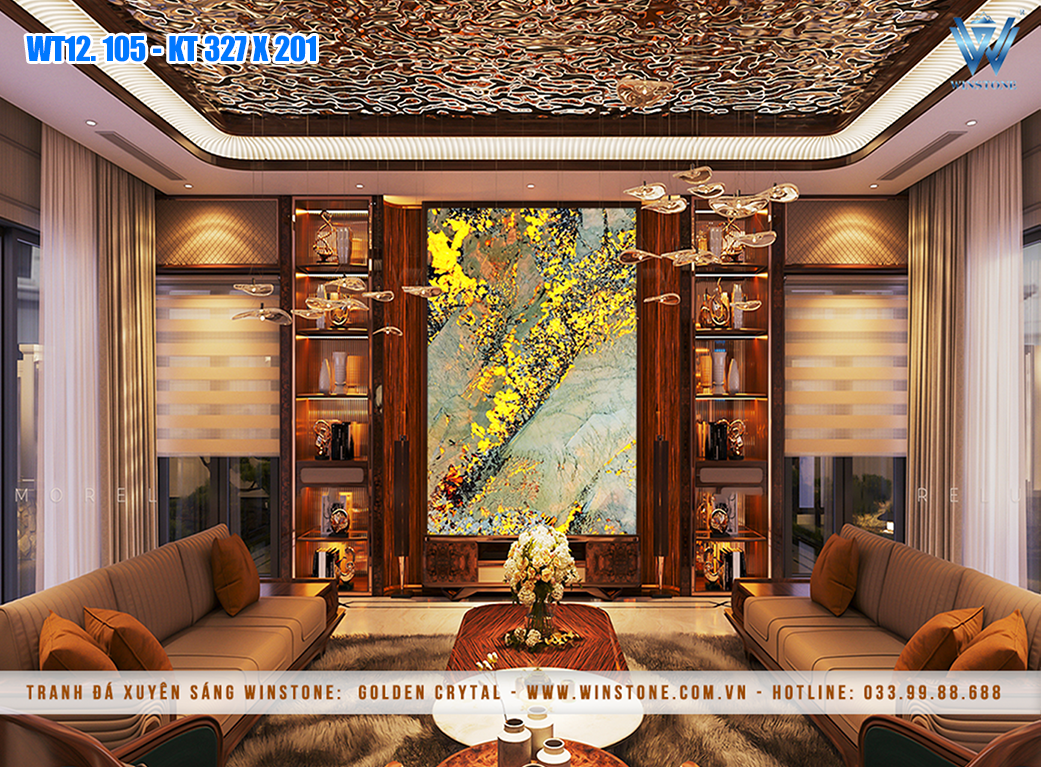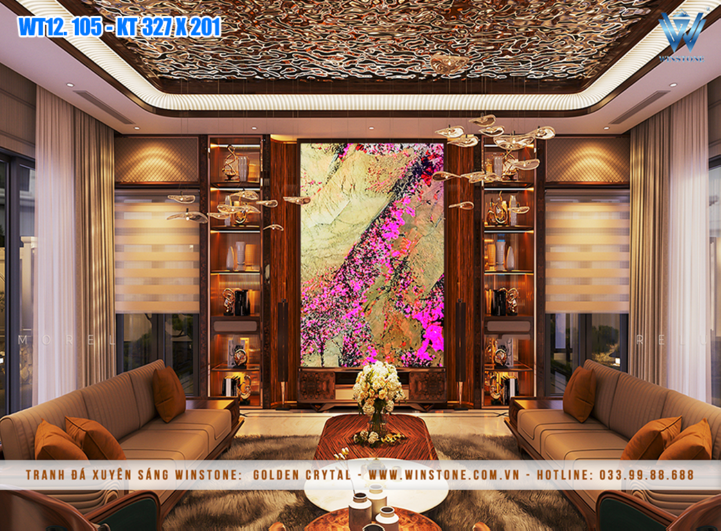 Tranh đá xuyên sáng là tuyệt phẩm của đá tự nhiên, nhập khẩu từ Brazil. Với đường vân tinh xảo và hiệu ứng xuyên sáng ấn tượng, mẫu tranh đá này mang đến vẻ đẹp đẳng cấp và cuốn hút, phù hợp với những không gian yêu cầu tính thẩm mỹ cao.