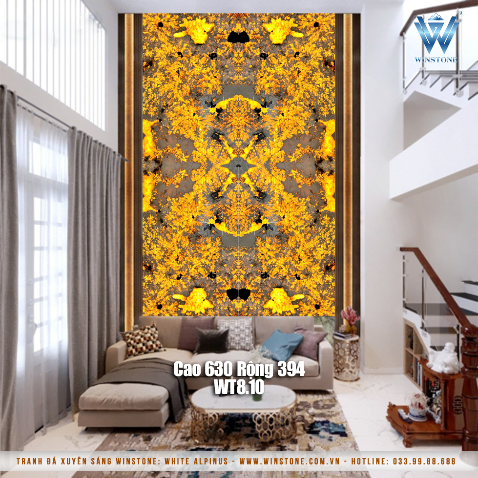 Hiệu ứng: Xuyên sáng, vân đá tự nhiên, bề mặt bóng