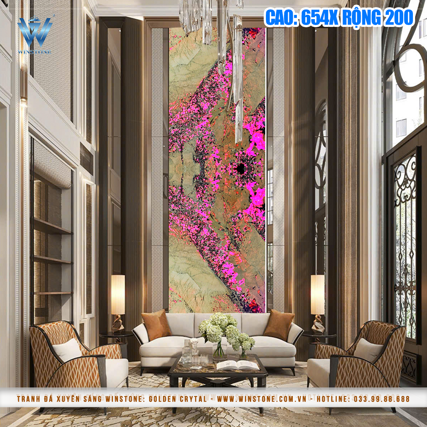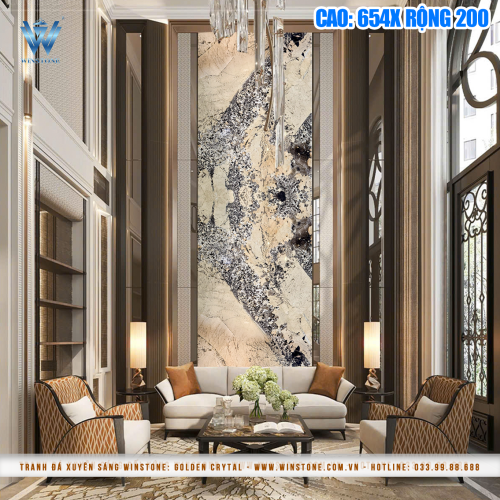 Hiệu ứng: Xuyên sáng, vân đá tự nhiên, bề mặt bóng