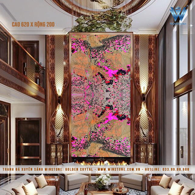 Tranh đá xuyên sáng là tuyệt phẩm của đá tự nhiên, nhập khẩu từ Brazil. Với đường vân tinh xảo và hiệu ứng xuyên sáng ấn tượng, mẫu tranh đá này mang đến vẻ đẹp đẳng cấp và cuốn hút, phù hợp với những không gian yêu cầu tính thẩm mỹ cao.