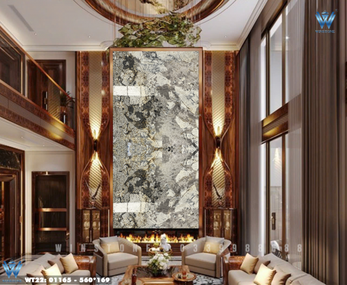 Khi không có ánh sáng, Tranh đá xuyên sáng khoác lên mình sự sang trọng với gam màu tự nhiên cùng các đường vân sống động. Khi kết hợp với hệ thống đèn LED vàng hoặc tím (tùy chọn theo nhu cầu), đá thạch anh Alpinus tạo hiệu ứng ánh sáng huyền ảo, giúp không gian trở nên lung linh và đẳng cấp hơn.