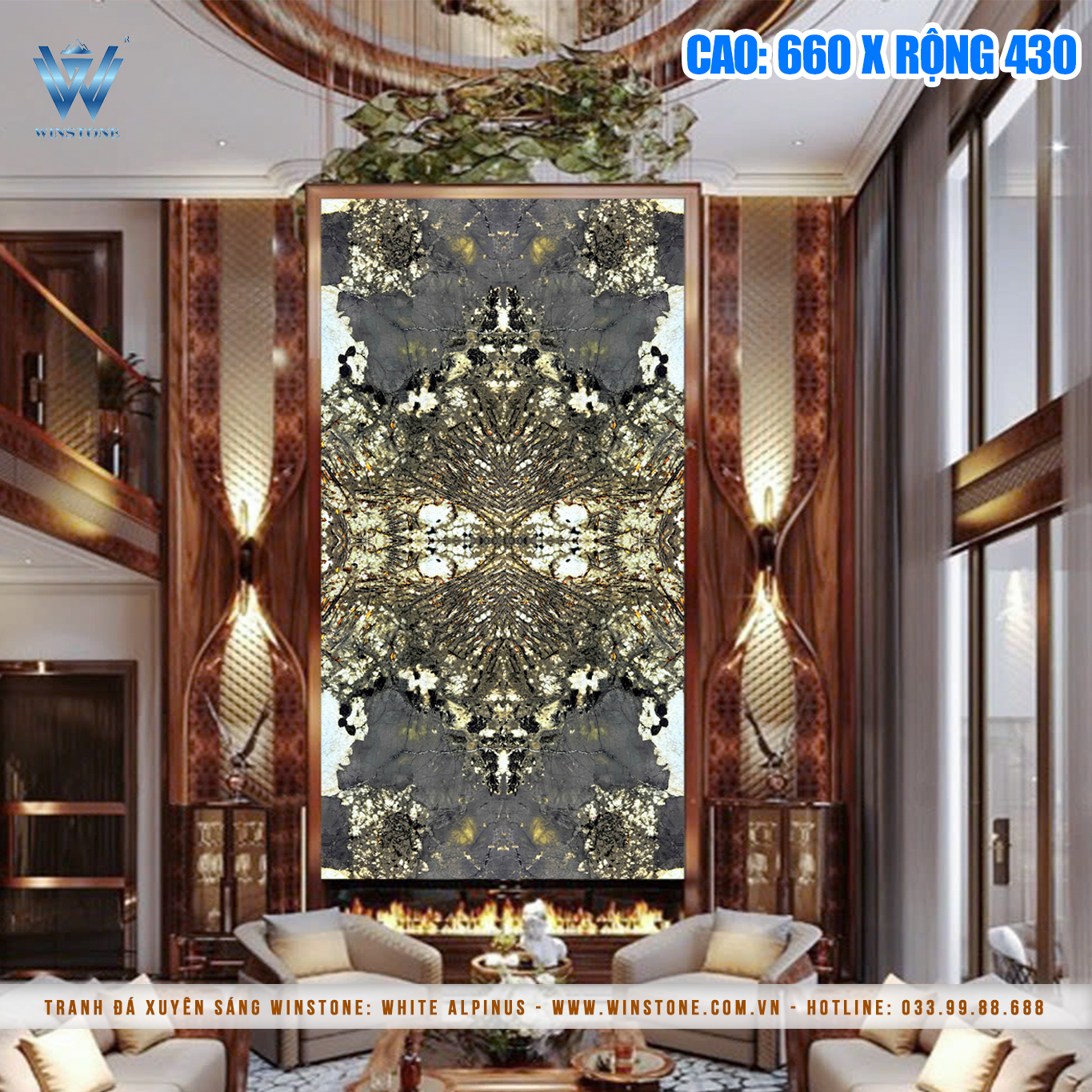 Hiệu ứng: Xuyên sáng, vân đá tự nhiên, bề mặt bóng