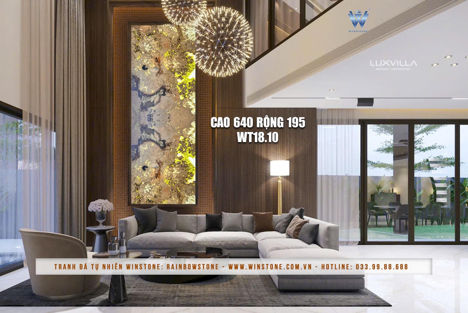 Tranh đá xuyên sáng là tuyệt phẩm của đá tự nhiên, nhập khẩu từ Brazil. Với đường vân tinh xảo và hiệu ứng xuyên sáng ấn tượng, mẫu tranh đá này mang đến vẻ đẹp đẳng cấp và cuốn hút, phù hợp với những không gian yêu cầu tính thẩm mỹ cao.